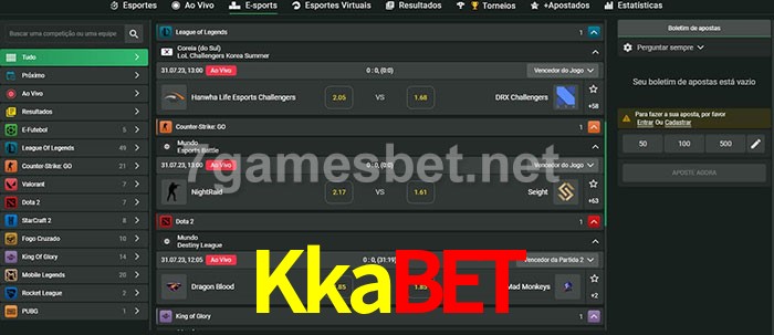 O Kkabet oferece uma grande seleção de opções de apostas em e-sports com probabilidades competitivas